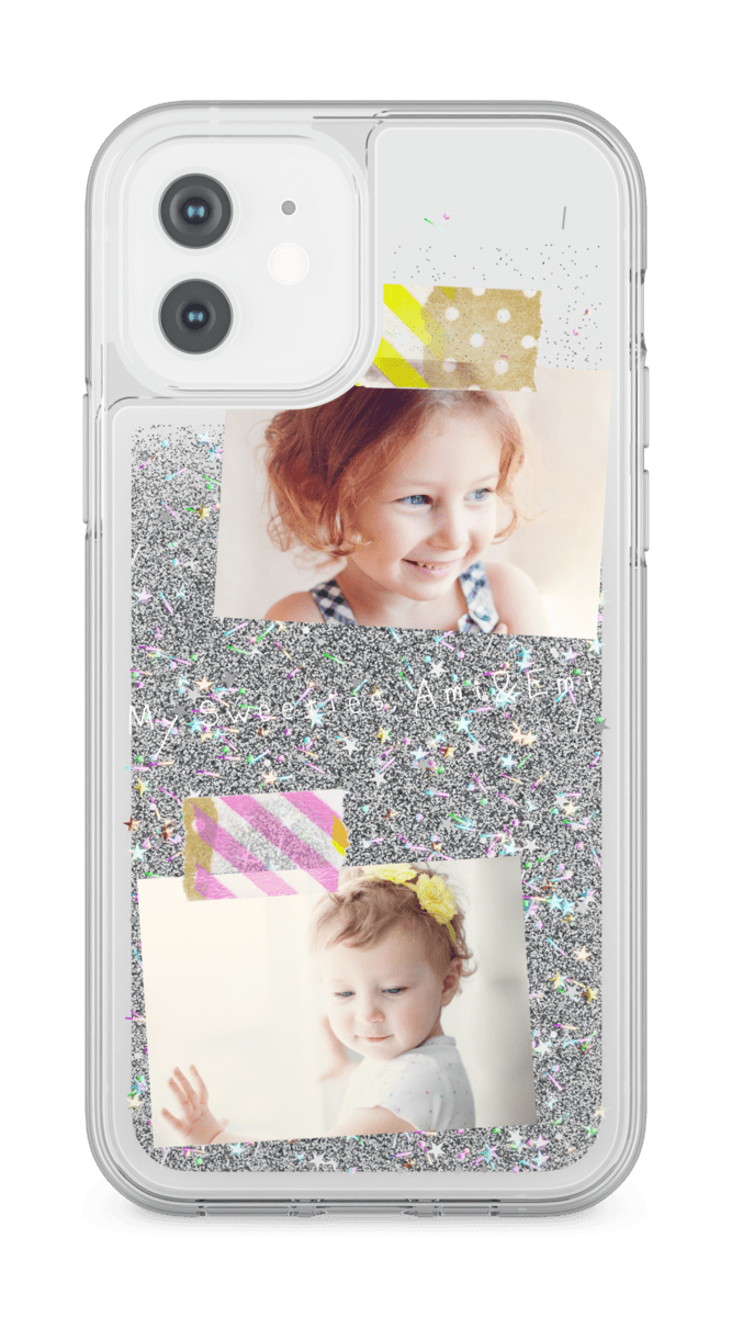 iPhone12 ホワイト グリッターケース シルバー