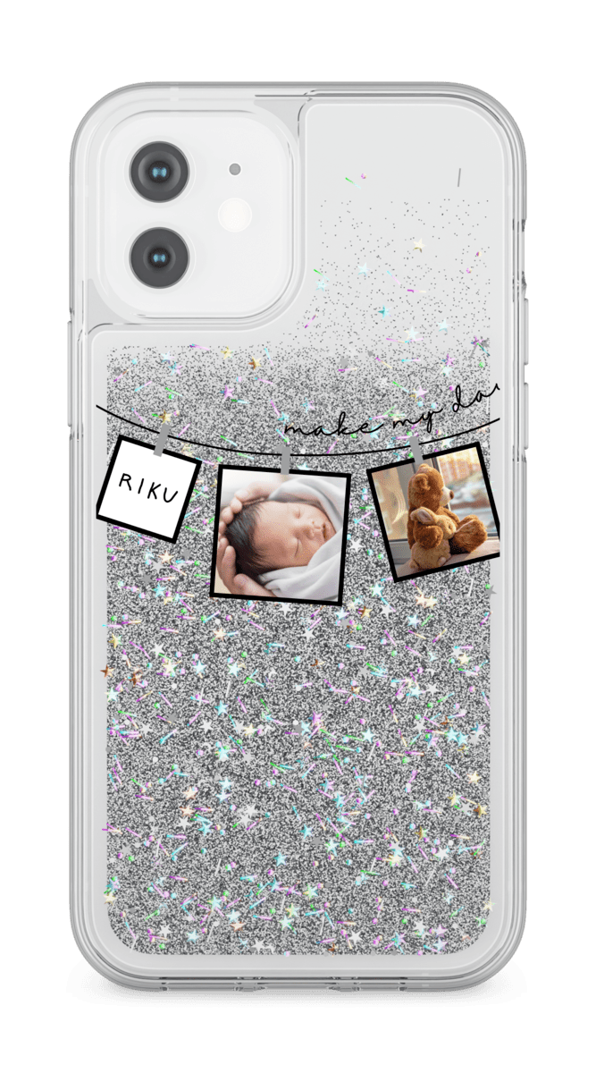 iPhone12 ホワイト グリッターケース シルバー