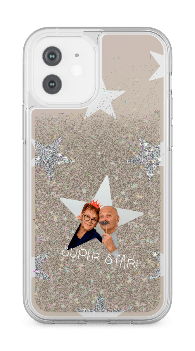 iPhone12 ホワイト グリッターケース シルバー